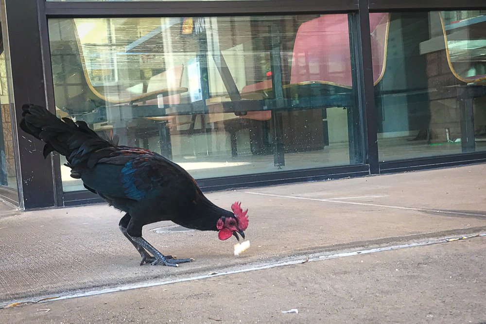 When I crawled back on the beach and met with Marie and Kate we decided to grab some lunch, with chickens all around us. I checked if perhaps we could go on a hike nearby but Kate was too tired and falling asleep on the backseat.