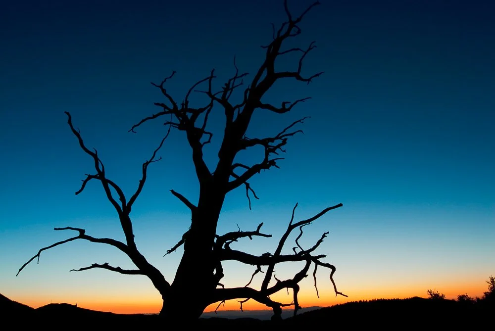 My wife and I first visited the area in the summer of 2006. I wanted to capture some cool sunrise photos with the trees, so we stayed overnight in Big Pine, CA, from where the road leads to the forest. We got up super early so we would get there before first light. It was interesting driving the unpaved roads in the dark, but we arrived safely and settled at a particular spot so I could catch the sun rising above the Great Basin of Nevada.