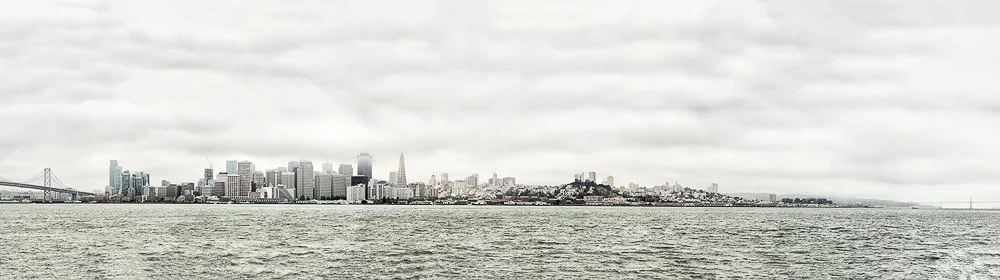 View of San Francisco from Treasure Island from the Bay Bridge to the Golden Gate Bridge