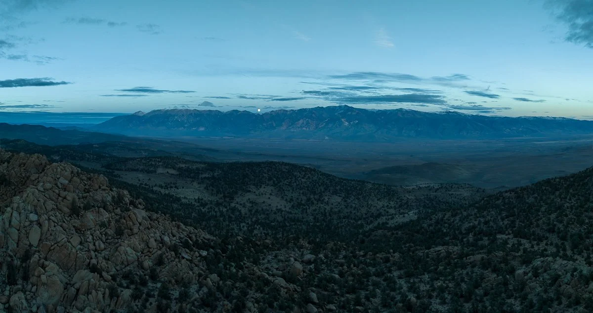 I flew towards the mountain and when I rose above it, a beautiful rising full moon revealed itself over the White Mountain range in the east: